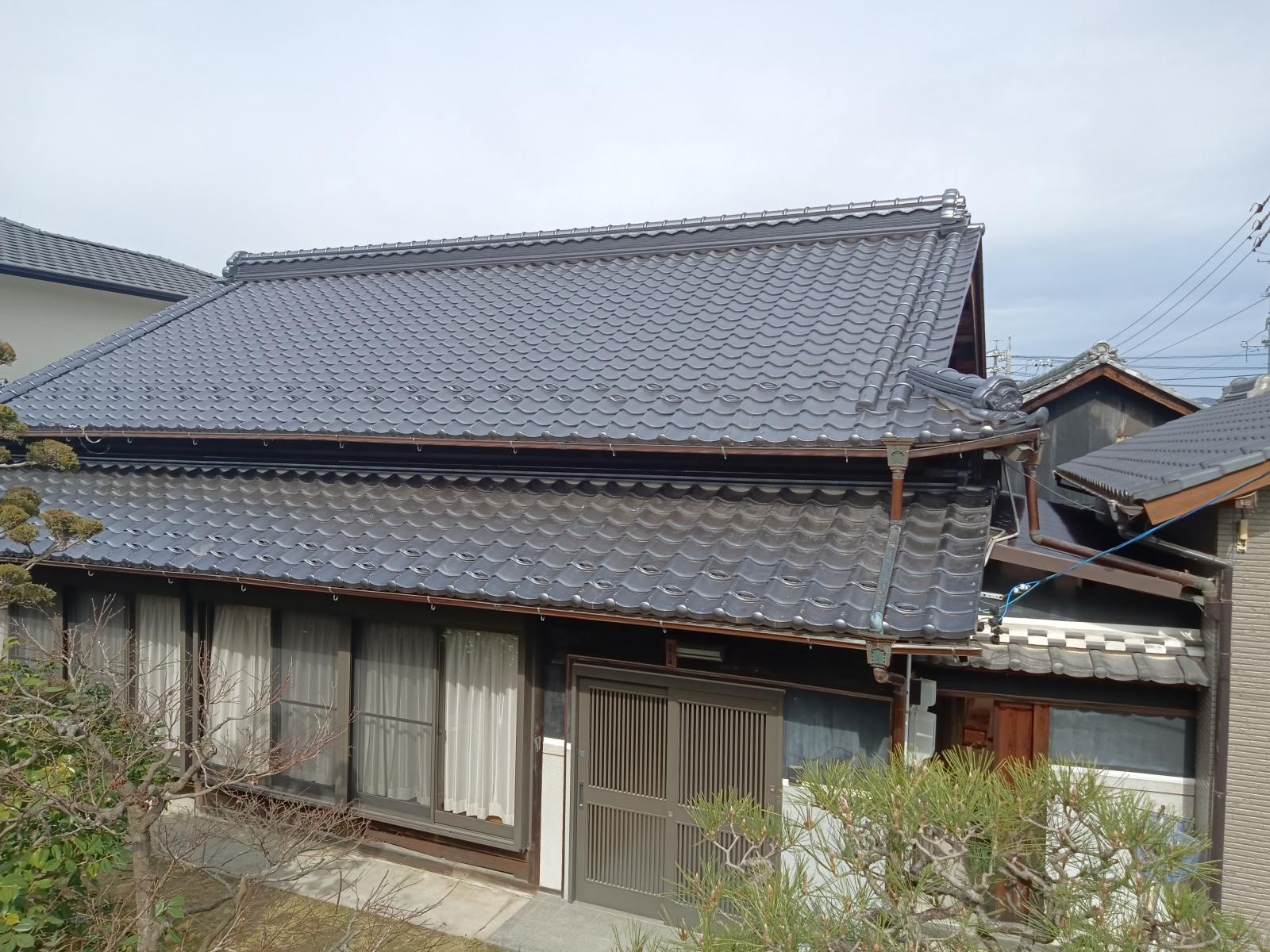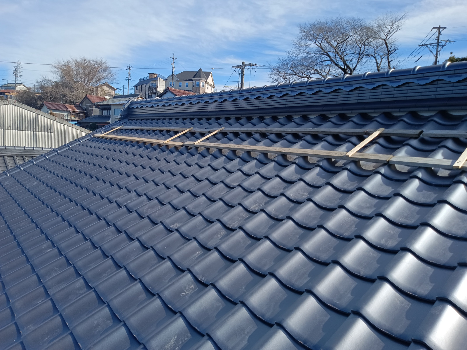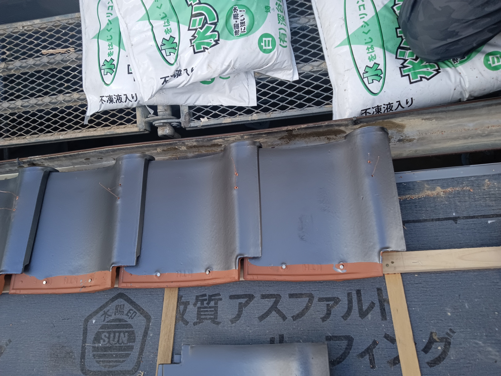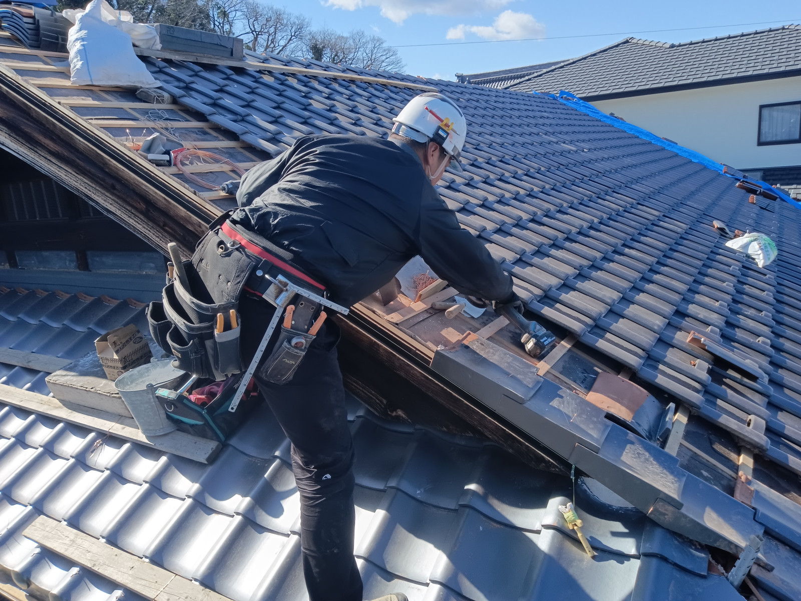 施工事例|いぶし瓦から三州陶器瓦への工事 2024/10/22 事例紹介CASE いぶし瓦から三州陶器瓦への葺替工事 施工前 施工後 【多治見市 M様邸】屋根が重いという事で色々見積させていただきましたが、和型がよいとのことで変更がない三州陶器瓦の銀りんになりました。土がのっていないのと、瓦屋根標準設計・施工ガイドラインの施工をしているので安心です。 工事の途中経過写真 土がてんこ盛り! 瓦めくり コンパネ ルーフィング施工 瓦棒打ち 軒から 瓦葺き 棟部施工 ヒボ丸施工 完成です
